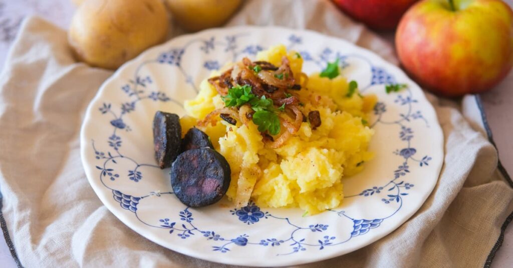 The name translates directly to “Heaven and Earth” in English. Heaven is the German word for heaven, and Earth means earth. Originally from the Rhineland region of Germany, you’ll find versions of it all across the country today, with each region adding its own little twist on the recipe.