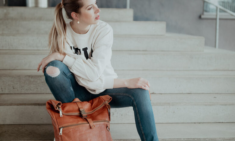 Berliner Bags focuses on sustainability and only produces high-quality leather accessories. The products are durable and stylish. That’s exactly my attitude now. I prefer to own fewer bags but have high quality ones. As a mom, I and as a family have been switching to backpacks for a while now. It’s just so practical. When Markus saw my new backpack, he immediately “snatched it up”. Since then, the “Utrecht XL” has been our faithful companion on excursions and Markus now uses it as an office backpack. Not only can it accommodate the daily things you need as a parent of two, but of course also your laptop etc. As a mom, I don’t want to miss out on style and that’s why I was really so happy when we shot this outfit, less than two weeks after giving birth. I felt so comfortable even though I was wearing my maternity jeans and an oversized sweater. I love jazzing up an outfit with beautiful accessories.