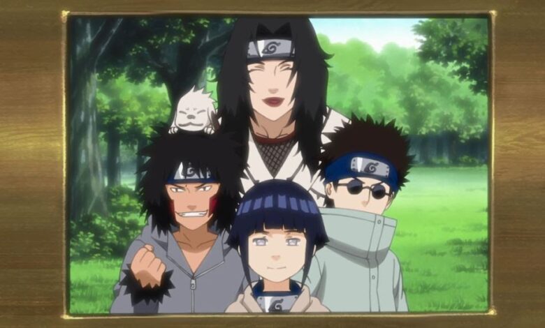 L’équipe 8 est composée des membres Hyuga Hinata, Inuzuka Kiba et Aburame Shino. Le capitaine est Mme Yuhi Kurenai.