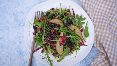 Salad with blood sausage – what?! Anyone who knows me might be surprised – black pudding is a childhood memory…