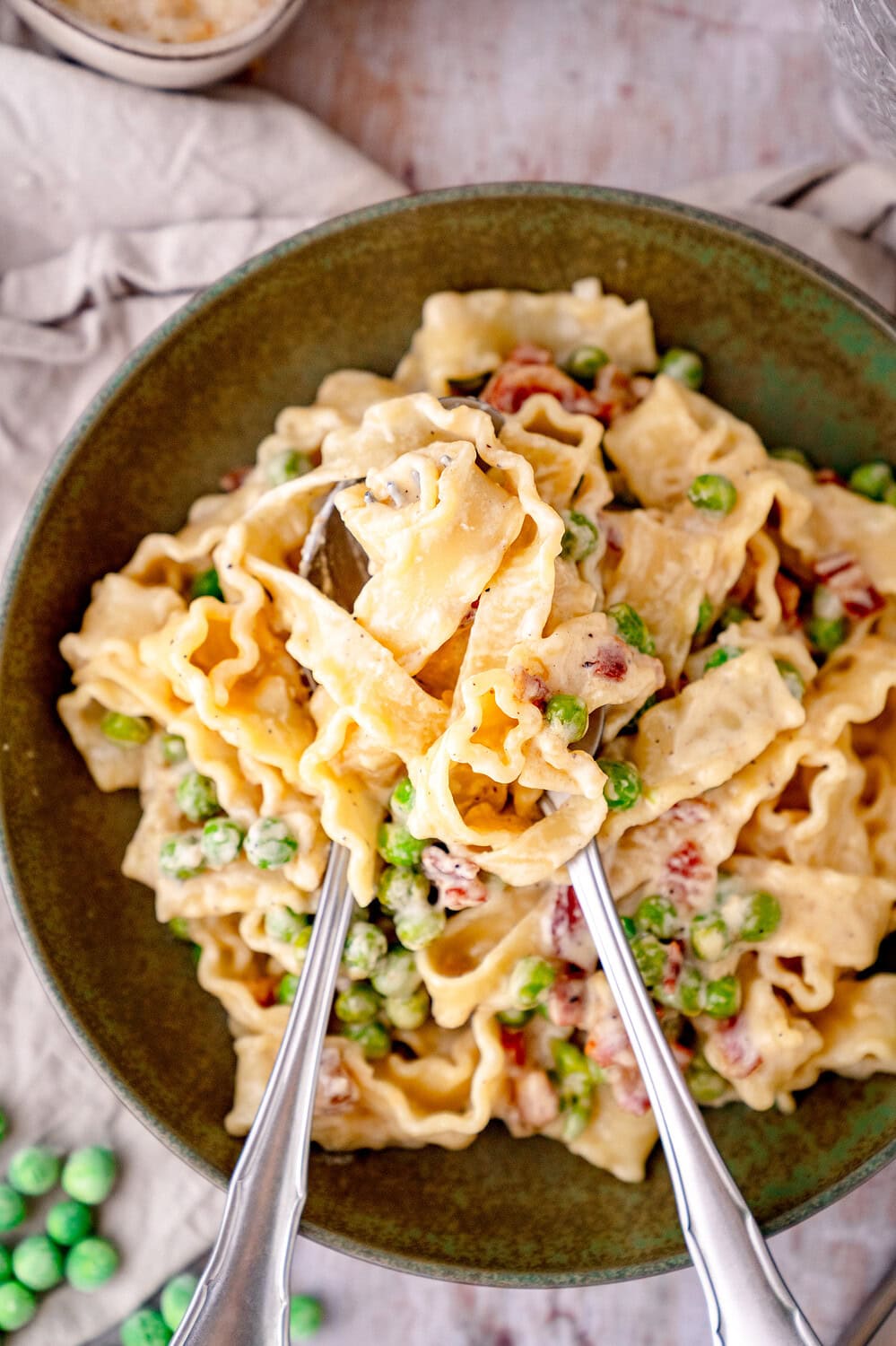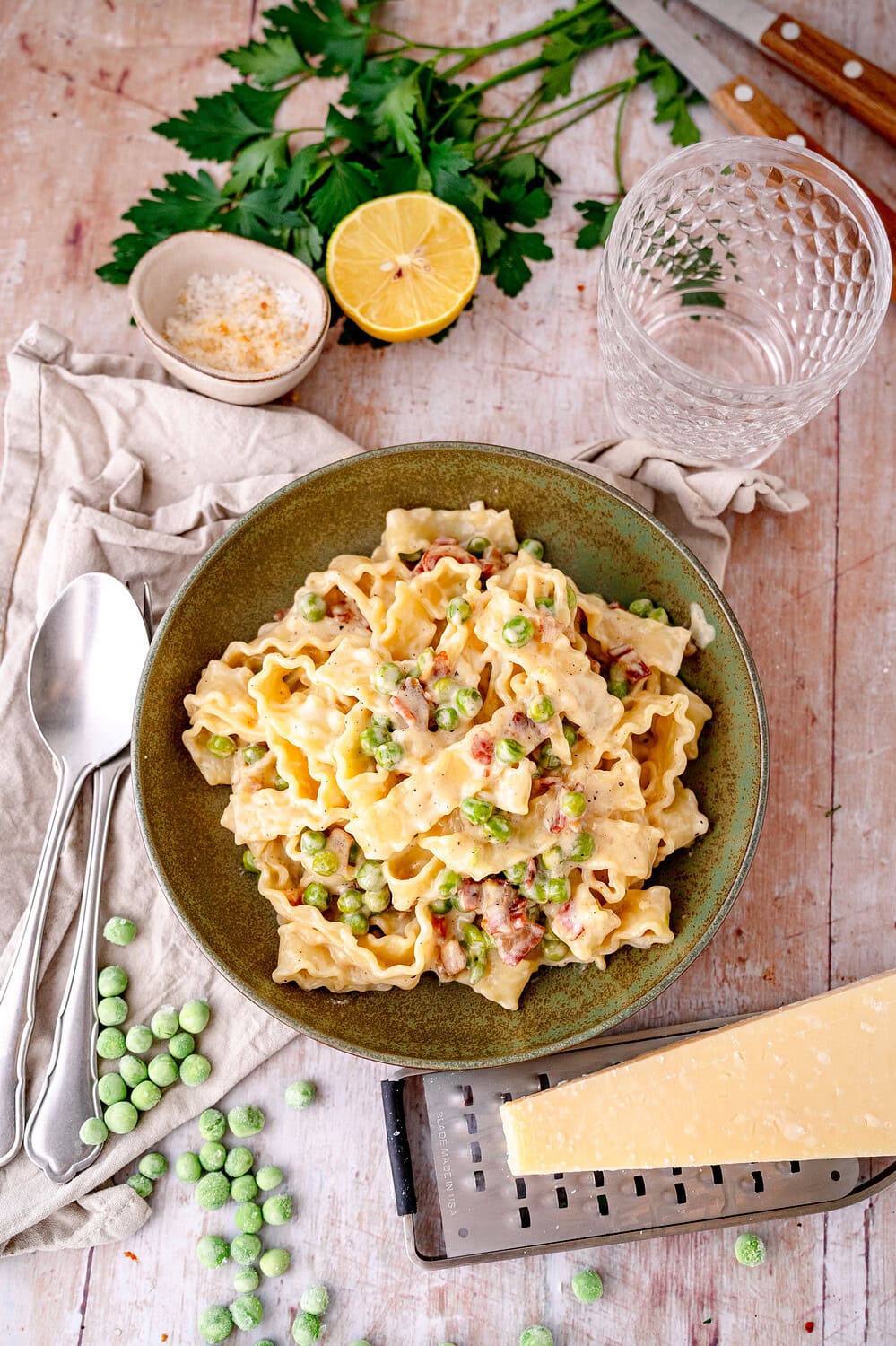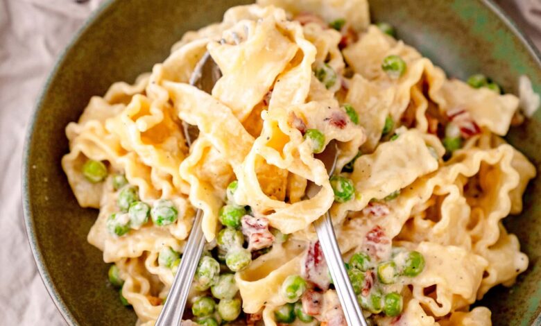 Cremige Pasta mit Pancetta und Erbsen – Unsere Geschichte: Carbonara-Genuss für die ganze Familie