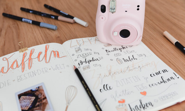 Everyone knows it: the bullet journal. In 2020, I decided to create such a journal. Unfortunately, with a child, I often didn’t have the time to deal with it regularly. Maybe you’re also one of those creative people who want to turn simple things into a wonderful work of art. Then this DIY is just right for you. How about making a bullet journal of just favorite recipes? Your own recipe book with a work of art character, so to speak! I took on the project and am absolutely thrilled with the result. I always have my instax Mini 11 with me so I can capture small and big moments and look at them directly. This time I took a photo of our favorite family recipe and used it to create a beautiful recipe page. I painted and lettered the ingredients and preparation.