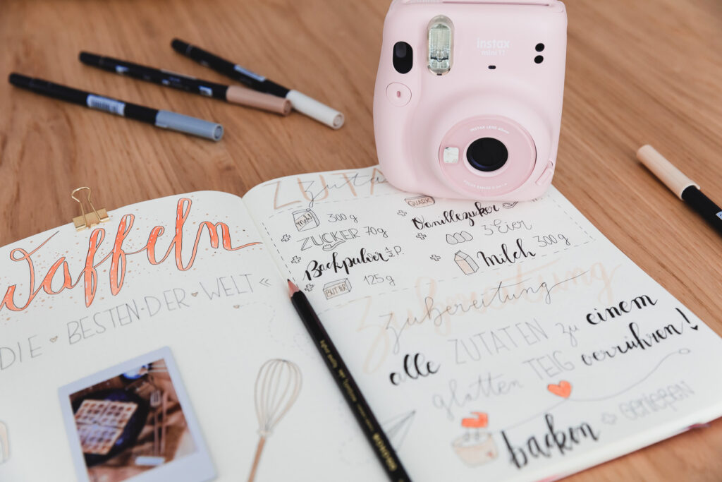 Everyone knows it: the bullet journal. In 2020, I decided to create such a journal. Unfortunately, with a child, I often didn’t have the time to deal with it regularly. Maybe you’re also one of those creative people who want to turn simple things into a wonderful work of art. Then this DIY is just right for you. How about making a bullet journal of just favorite recipes? Your own recipe book with a work of art character, so to speak! I took on the project and am absolutely thrilled with the result. I always have my instax Mini 11 with me so I can capture small and big moments and look at them directly. This time I took a photo of our favorite family recipe and used it to create a beautiful recipe page. I painted and lettered the ingredients and preparation.