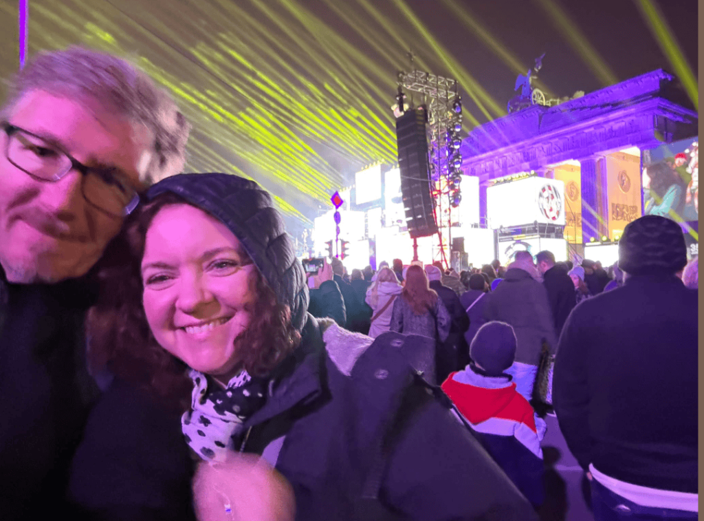 - Celebrating the 35th anniversary of the Fall of the Berlin Wall thousands of others at the Brandenburg Gate.