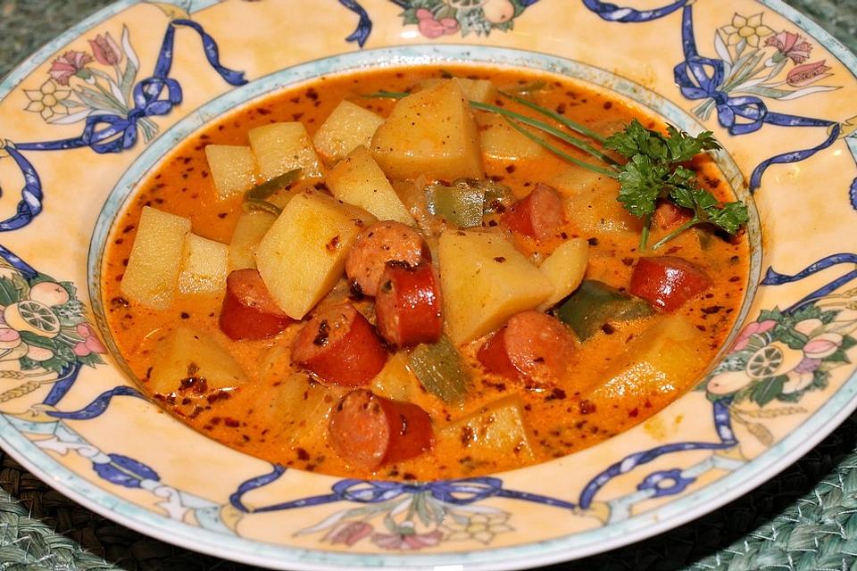 Here’s another yummy German dish that is quite popular: You will love the German Potato Goulash dish. It doesn’t contain beef but sausages and potatoes. This stew or stew is seasoned with paprika, marjoram and caraway seeds, and tastes delicious when served with some fresh bread and butter. It’s very easy to make. Happy Cooking!
