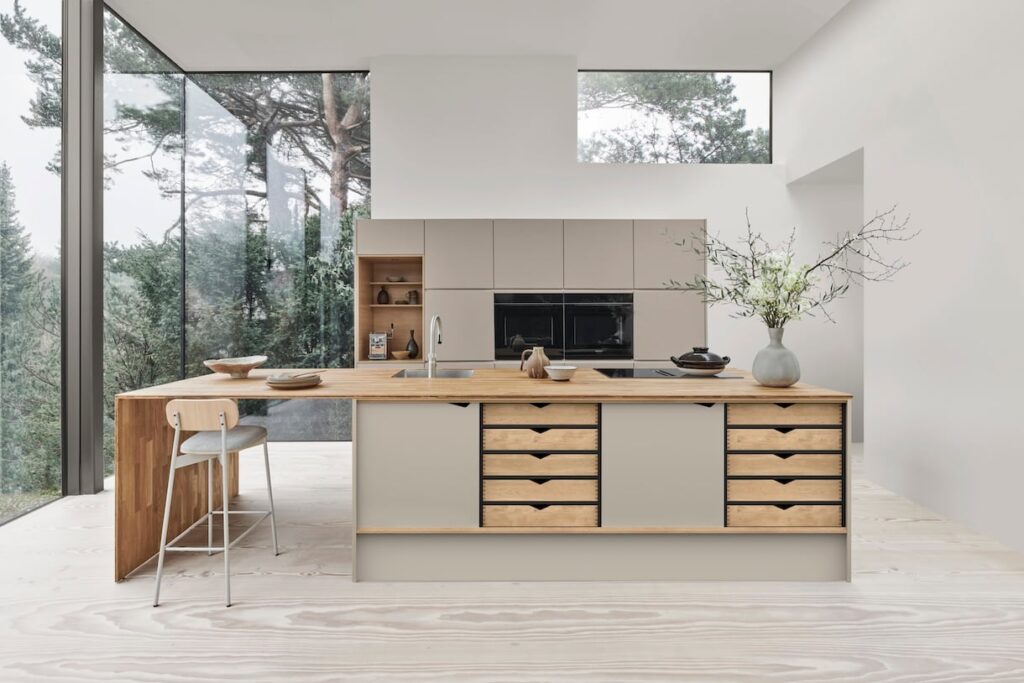 All products are made from recycled materials and FSC-certified wood. It is transported in flat packaging to reduce CO₂ emissions and is assembled on site in Germany. Claus Johnsen, Category Management Director at Kvik, explains: “At Kvik we use recycled materials in every kitchen. We can even quantify the footprint of the new dream kitchen – for long-lasting kitchens with a clear conscience.”