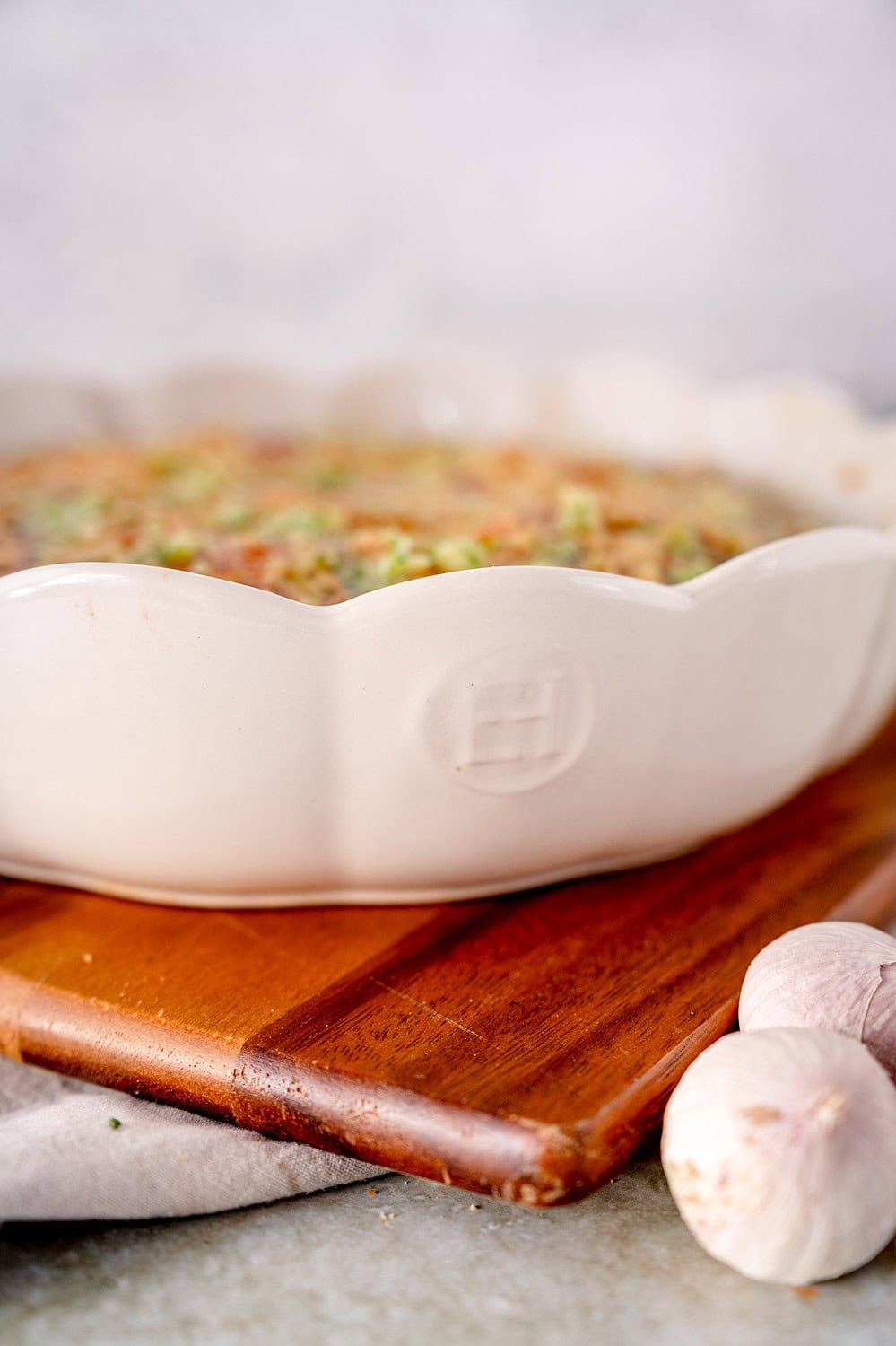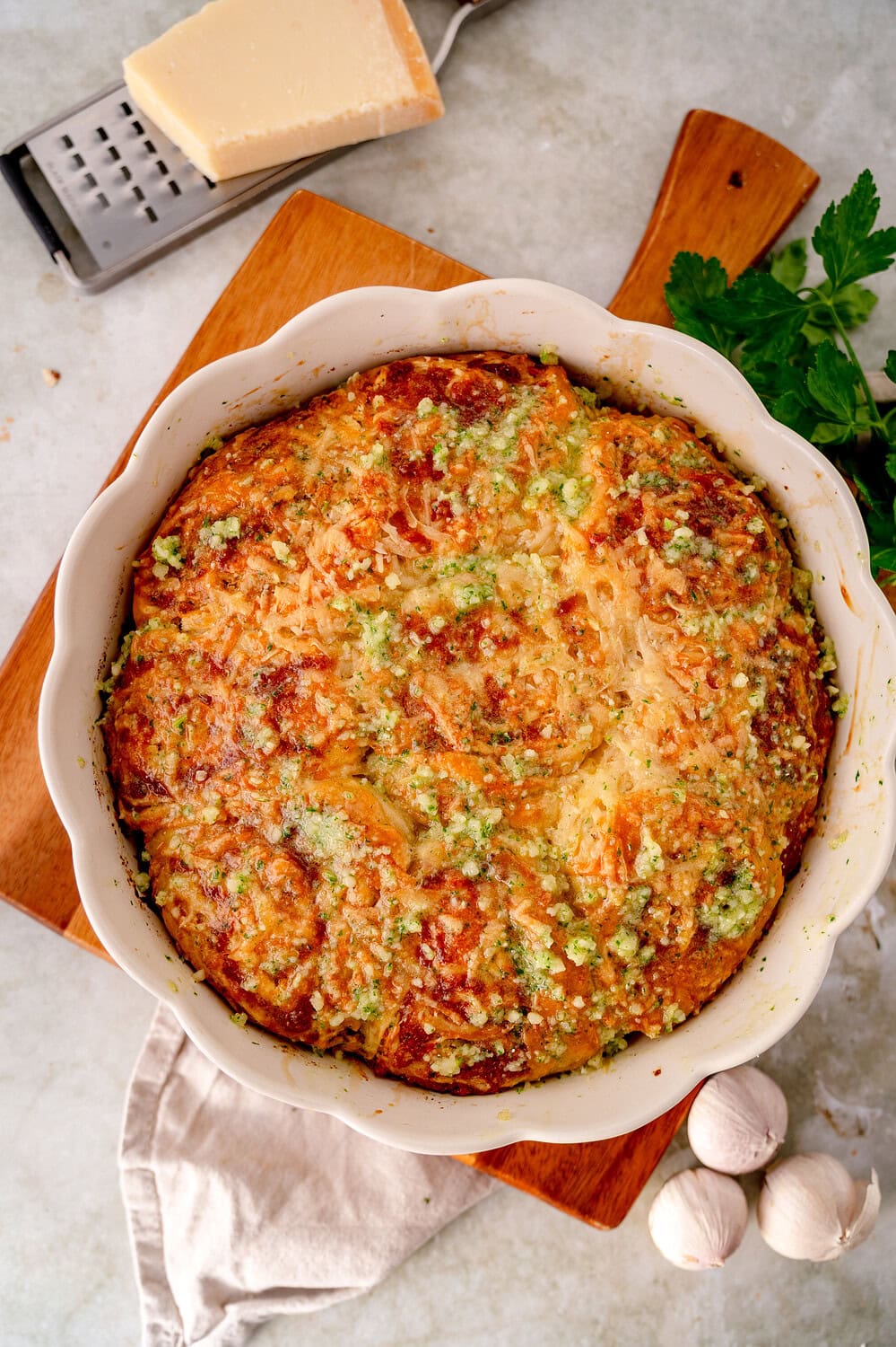 Die Präsentation in der runden Form (besonders in der Mathilde von Emile Henry) macht aus einem einfachen Hefeteig-Gebäck ein echtes Centerpiece für dein Buffet. Jeder bricht sich sein Stück heraus – dieses „Pull-Apart“-Feeling fördert die Geselligkeit und macht einfach Spaß.