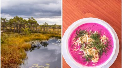 Slice the cucumbers and zucchini into 1 mm wide slices, place in a bowl and season with salt. Let it steep for 30 – 60 minutes.