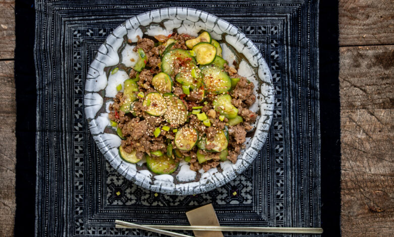Korean beef with cucumbers and zucchini