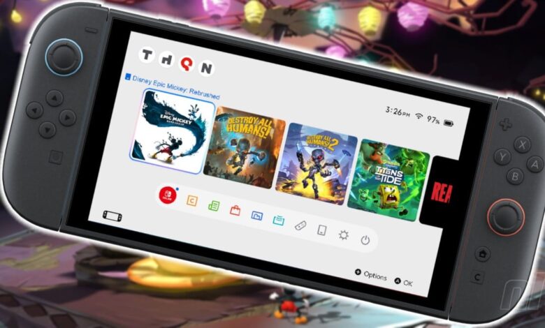 Le mois dernier, THQ Nordic a annoncé Disney Epic Mickey : Rebrushed, Destroy All Humans ! et détruisez tous les humains ! 2 – Repédé pour Switch 2 – afin que le site officiel puisse être mis à jour avec ceux-ci. Bob l’éponge : Titans of the Tide sera également disponible sur Switch.