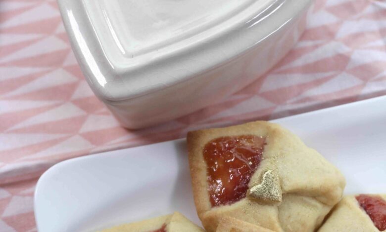 These Raspberry Love Letter Cookies are not a new idea. I see them in several publications and on social media, both in Germany and in the United States. But, seriously, how cute are these for Valentine’s Day? I had to try my hand at them. I am moderately pleased with the result. However, this is because of my own clumsiness, and I needed more practice folding the dough.