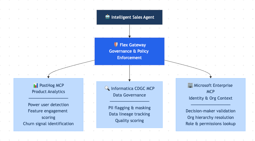 This post walks through how a governed orchestration approach works across three MCP servers: PostHog (signals), Informatica (metadata), etc Microsoft (identity), to transform raw product signals into a governed, auditable sales decision.