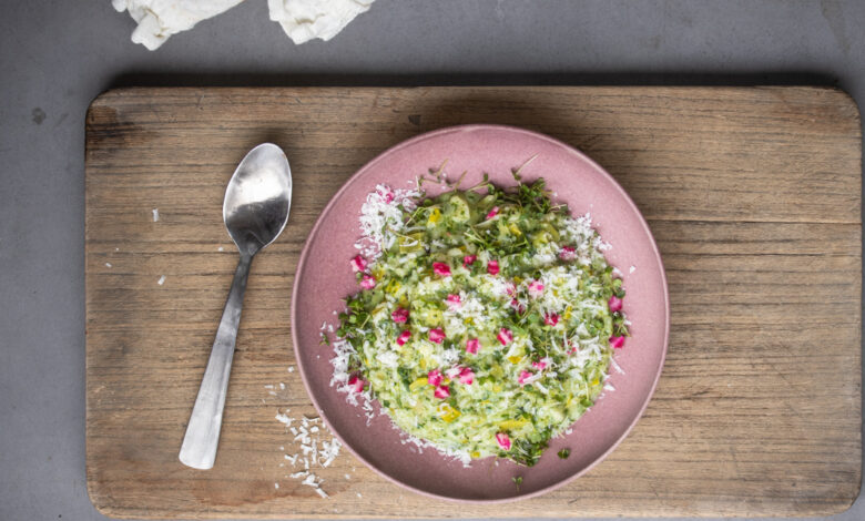 Risotto with spinach, leek and a pinch of “sakura”