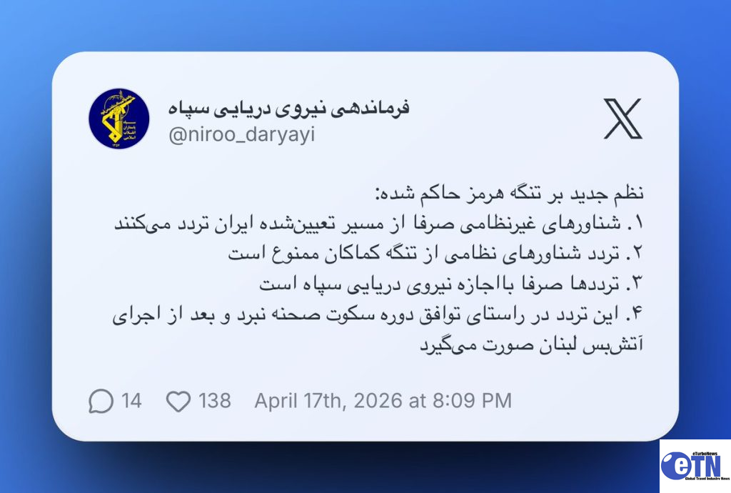 According to statements broadcast by Iranian state media, the Islamic Revolutionary Guard Corps (IRGC) Navy has imposed a “new order” governing all maritime traffic through the strait.