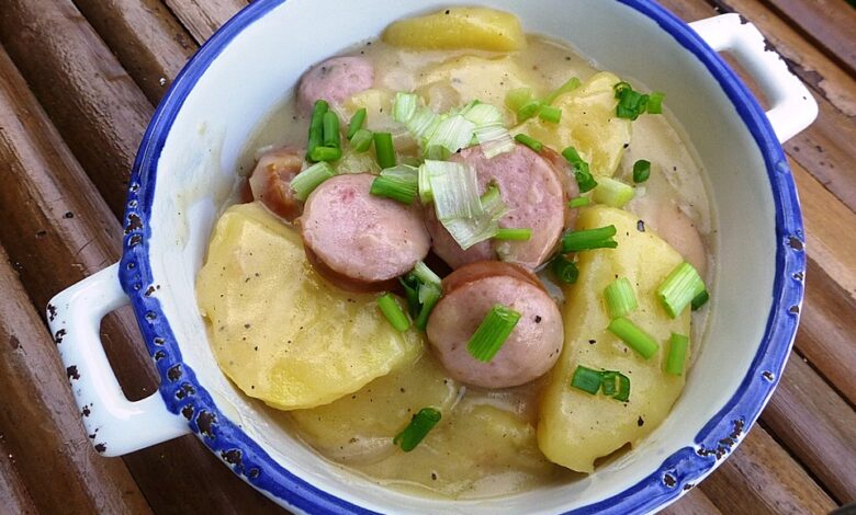 This is a German dish that originated a long time ago. It’s from the time after the second world war ended, the time of a big food shortage. Such times, as bad as they are, created many dishes, and still they are cooked in present time. One of these dishes was the Swabian Sour Potatoes.