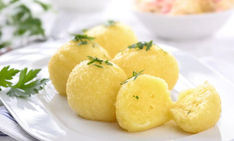 Soft yet hearty Thuringian dumplings made from a blend of raw and boiled potatoes hide a crunchy bread cube inside—pure Sunday comfort with true German soul.