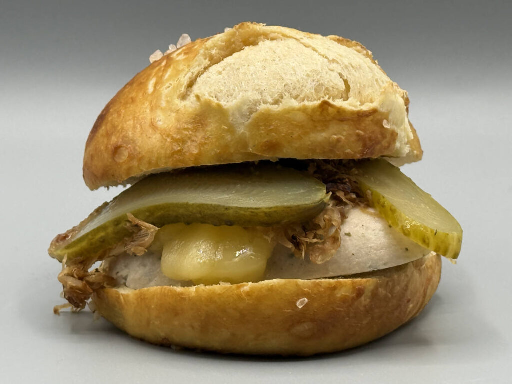 Imagine the white sausage goes to the street food market – and comes back as a burger. What sounds like a culinary experiment is actually an incredibly harmonious fusion: Our white sausage burger combines traditional Bavarian ingredients with modern burger cuisine – between two halves of a fluffy, homemade pretzel brioche bun.